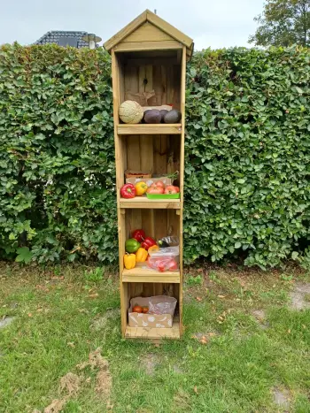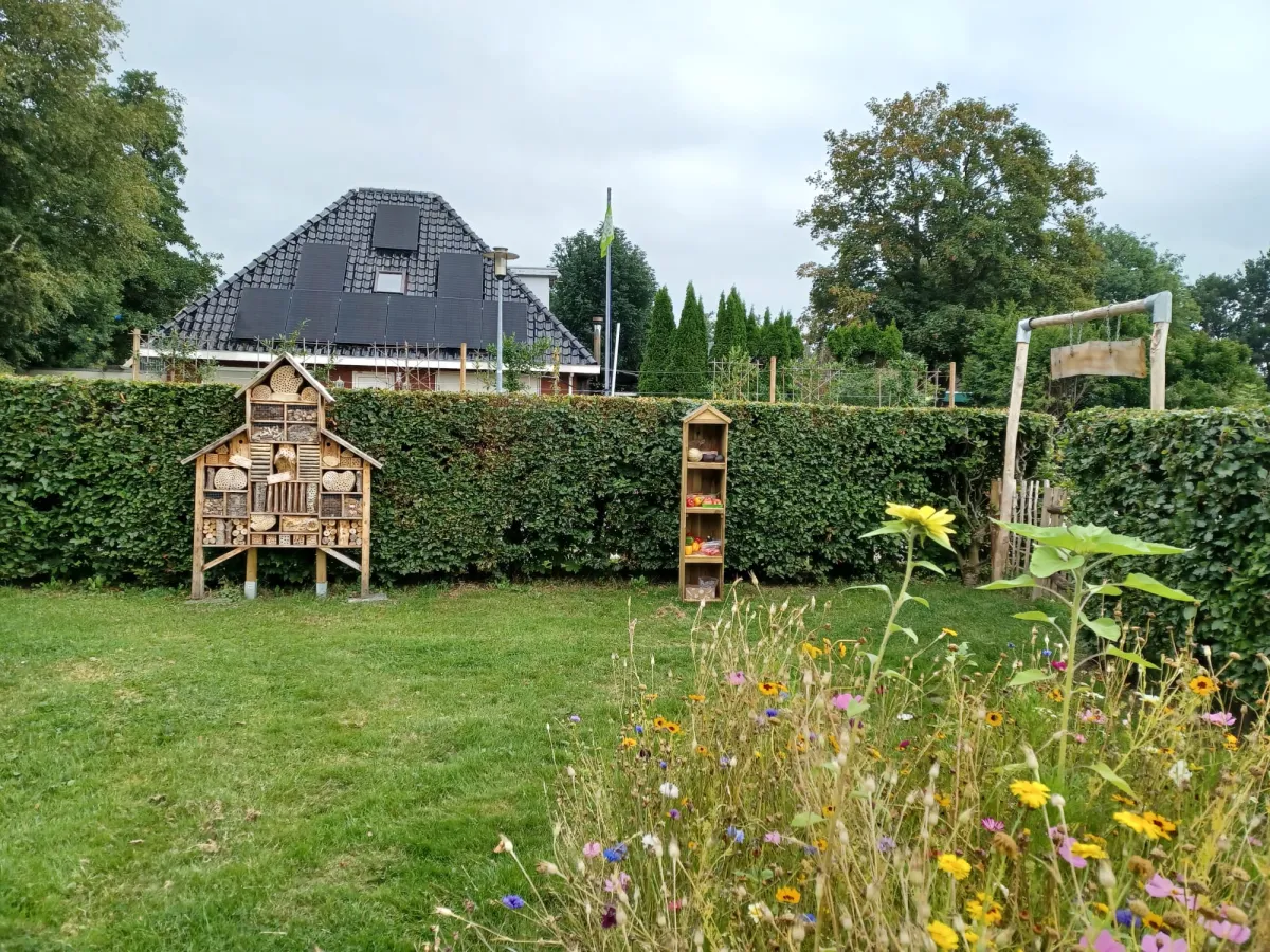 In De Groene Oase groeien allerlei verse groenten, kruiden en bloemen, die vrij toegankelijk zijn voor iedereen uit het dorp. Of je nu groene vingers hebt of gewoon nieuwsgierig bent: je mag hier proeven, plukken en beleven. Zo brengt de tuin mensen samen en zorgt het voor verbinding met elkaar én met de natuur.