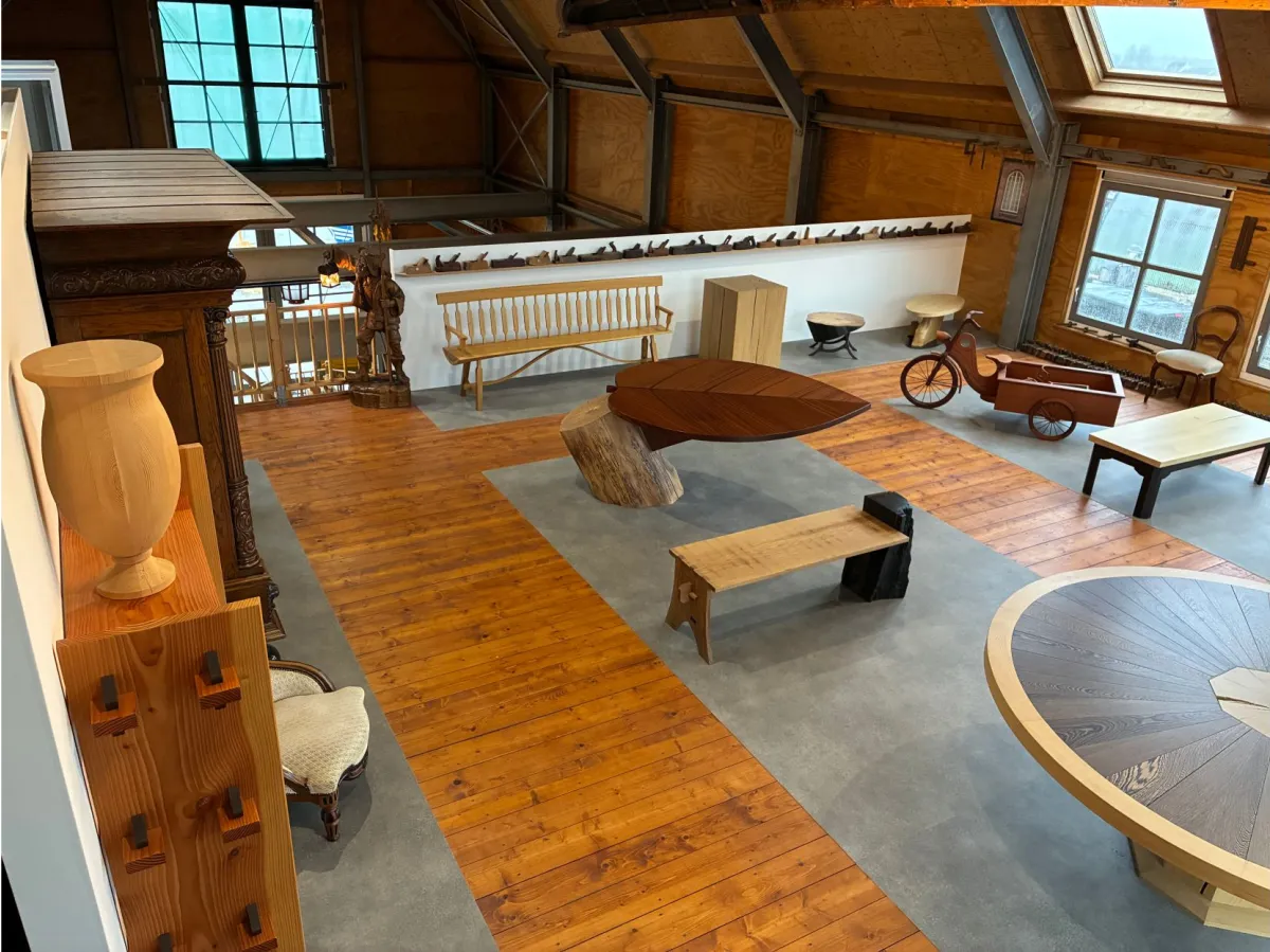 En natuurlijk de maker zelf die aan het werk is in zijn werkplaats en je graag verteld over zijn vak en bijzondere houtwerk.